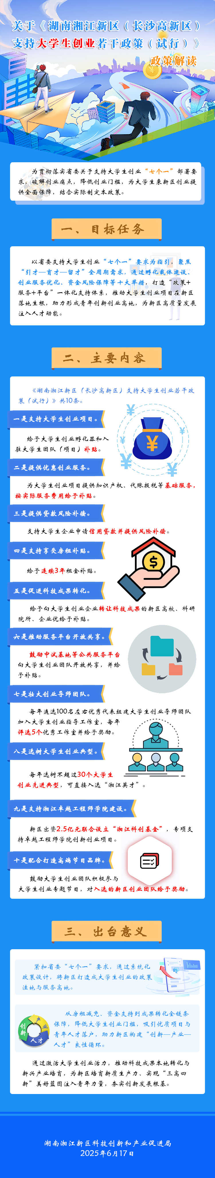 【图解】关于《湖南湘江新区(长沙高新区)支持大学生创业若干政策(试行)》政策解读