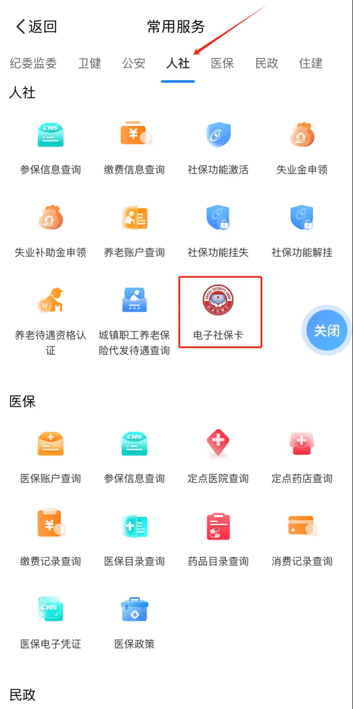 进入“湘易办”APP,在首页金刚区直接找到“电子社保卡”,或是点击“更多服务”,在“常用服务”里选择“人社”分类选项,找到“电子社保卡”,根据页面指引就能成功申领个人“电子社保卡”啦!