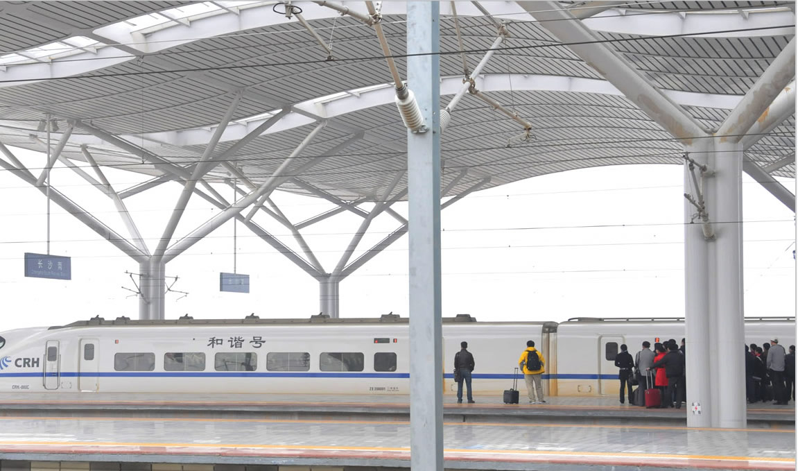 长沙是全国铁路交通枢纽,京广复线贯穿南北,湘黔、浙赣、石长线连接东西。长沙火车站距景区4.7公里,长沙站为沪昆高速铁路线和武广高速铁路线上的重要枢纽站。同时随着2010年湖南3+5城市群城际铁路项目的启动,景区对周边地区的辐射和影响力也进一步加强。