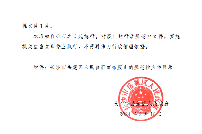 长沙市岳麓区人民和记AG关于公布涉及行政复议的行政规范性文件清理结果的通知