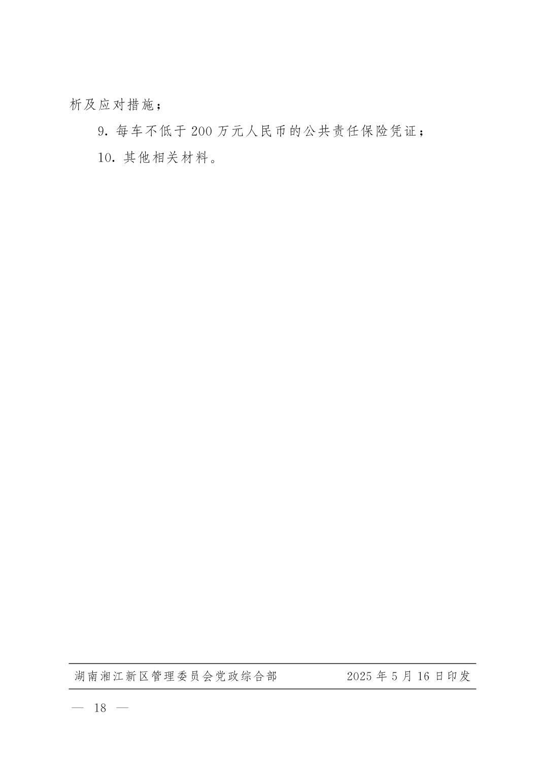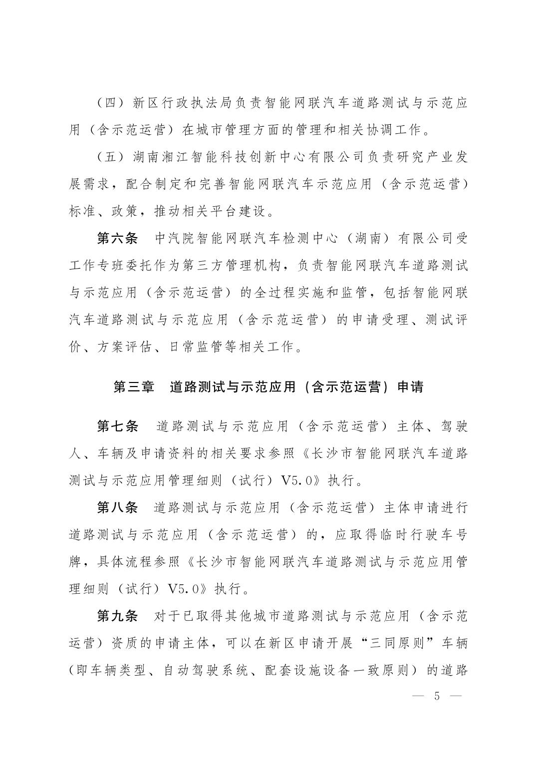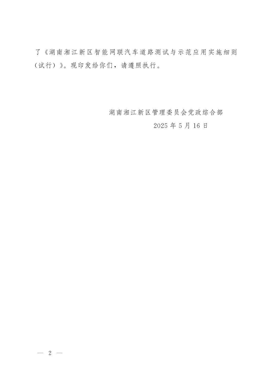 湖南湘江新区管理委员会党政综合部关于印发《湖南湘江新区智能网联汽车道路测试与示范应用实施细则(试行)》的通知