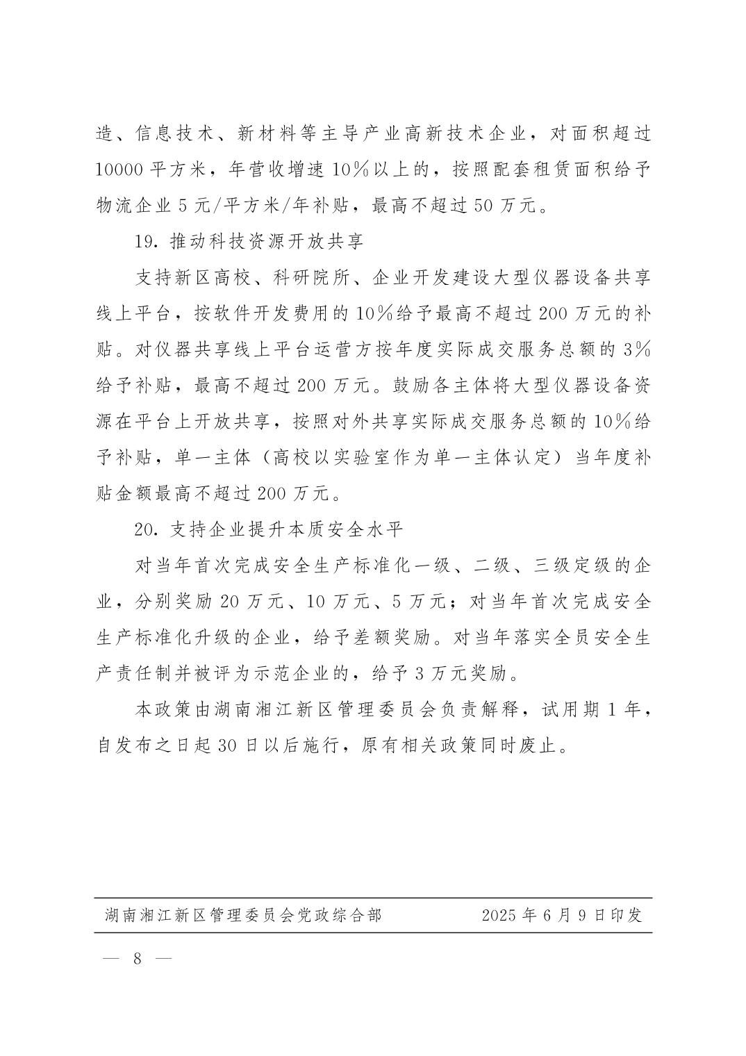 湖南湘江新区管理委员会关于印发《湖南湘江新区(长沙高新区)促进经济高质量发展的若干政策(试行)》的通知