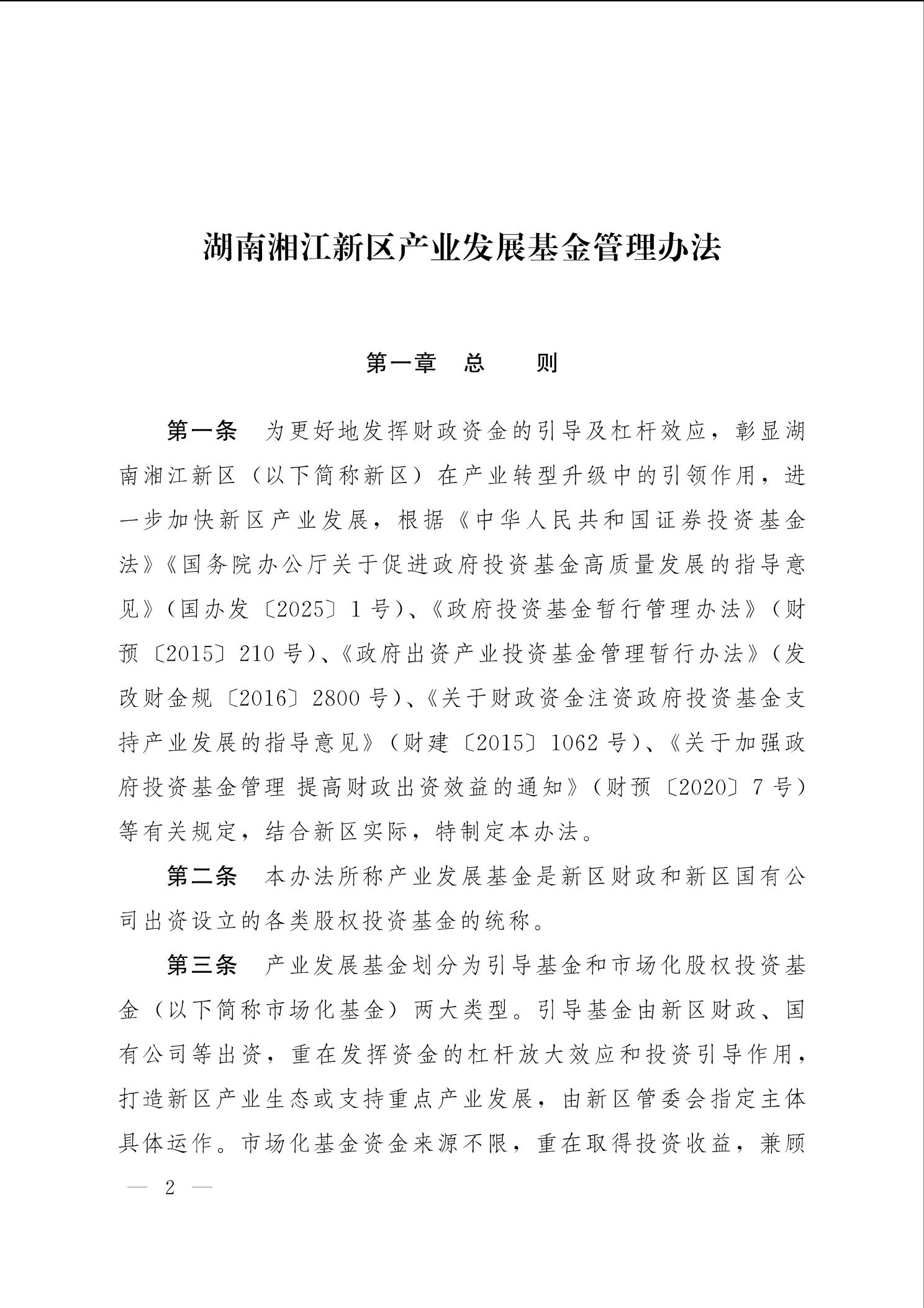 关于《湖南湘江新区产业发展基金管理办法》及《湖南湘江新区产业发展基金投资运作尽职免责办法》的政策解读