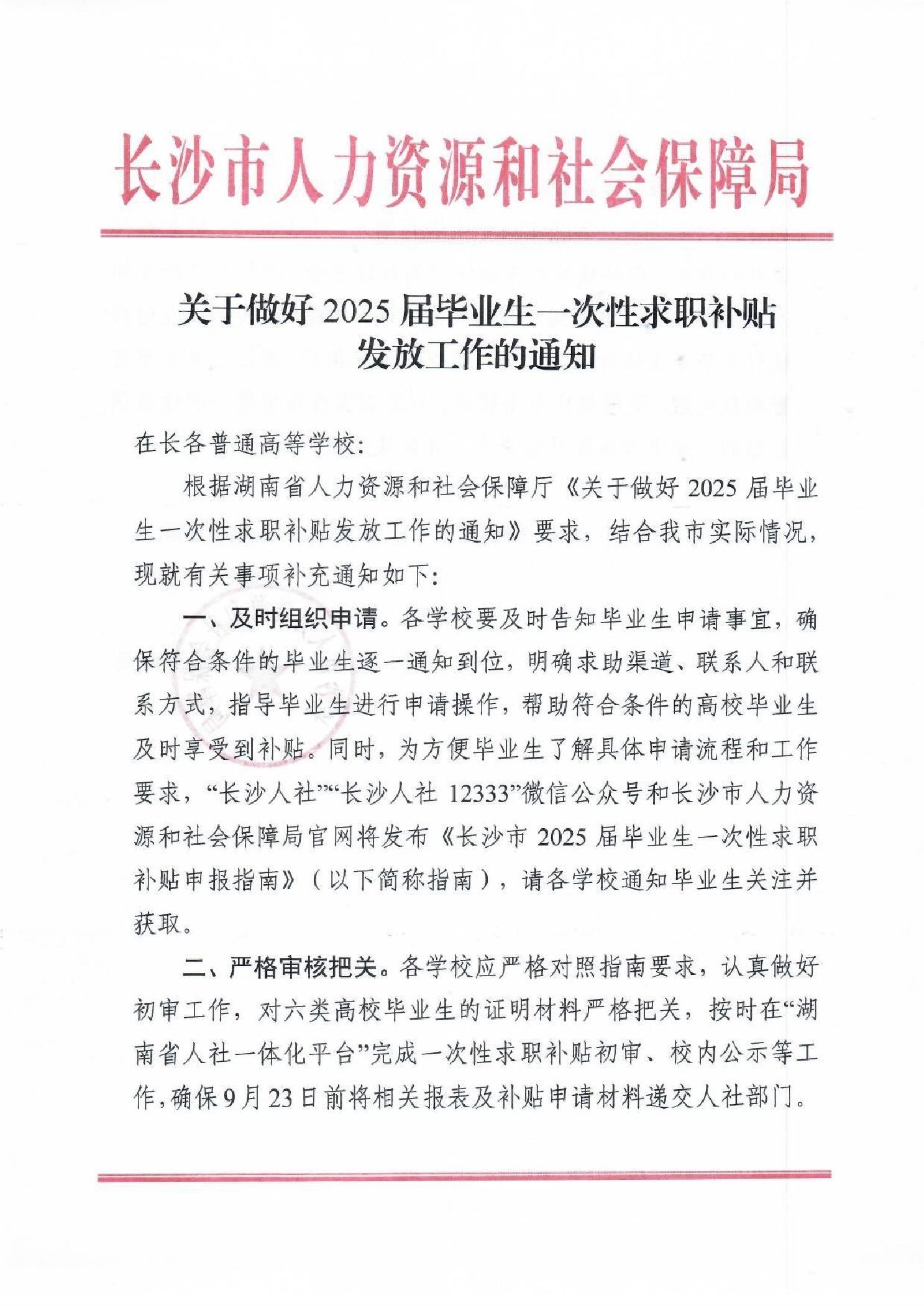关于做好2025届毕业生一次性求职补贴发放工作的通知