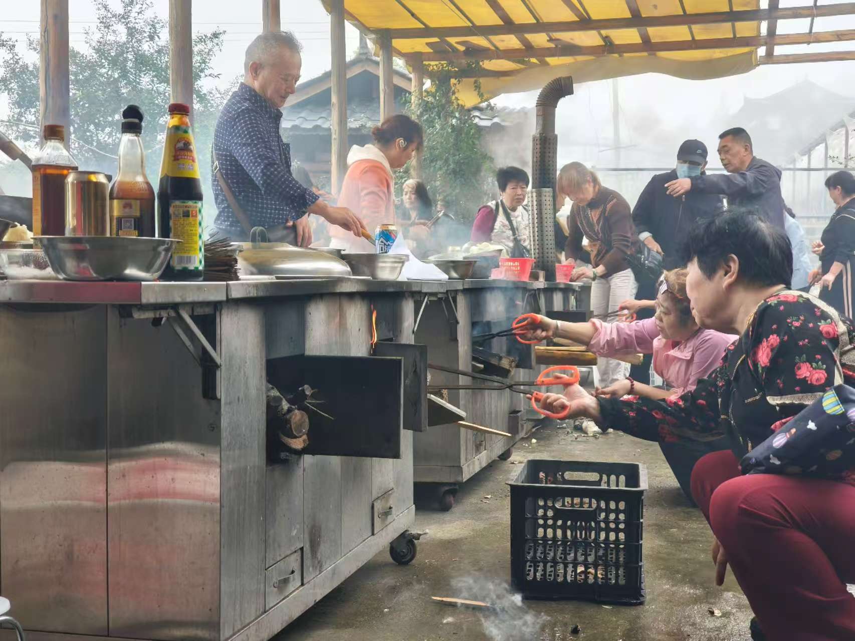 活动以10人为一组开展,围绕“健康、家常、拿手”主题,用柴火灶烹制一桌家常菜。各组员分工协作,洗切炒煮有条不紊,柴火噼啪声与饭菜香气交织,现场热闹非凡。比赛采用“盲选评分”机制,每组推选1名代表组成评委团,从菜品口味、健康搭配、摆盘造型等维度匿名打分,最终评选出1组一等奖、2组二等奖、3组三等奖,并为获奖团队颁发奖品。